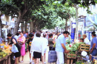 Marknad inne i gamla stan. Folk samlas för att träffas och umgås. Och kanske handla lite också.